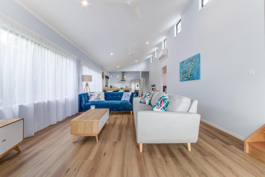 Tucked away in the hillside forest above Airlie Beach, Hillside Haven lives up to its name. This contemporary three-bedroom holiday home offers that perfect balance of feeling like you're in your own private world while still being just a kilometre from all the action. The home backs onto beautiful bushland, so you'll wake up to bird calls and the rustling of leaves instead of traffic noise.
