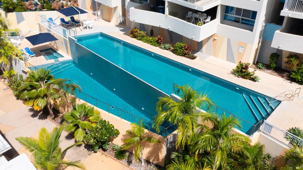 "The apartment was huge. Felt like a true home away from home. Both verandahs had a fantastic view over the town to the ocean. Very comfortable place to stay. The pool is awesome, nice and quiet. Everything, stunning views and a big apartment. Top appliances, grill, great management. Covered parking. Walking distance to everything. Check-in was easy and quick, staff were very helpful and welcoming."
