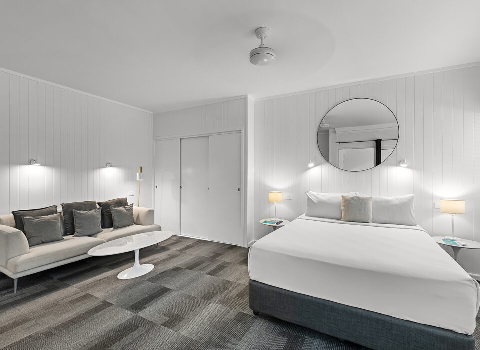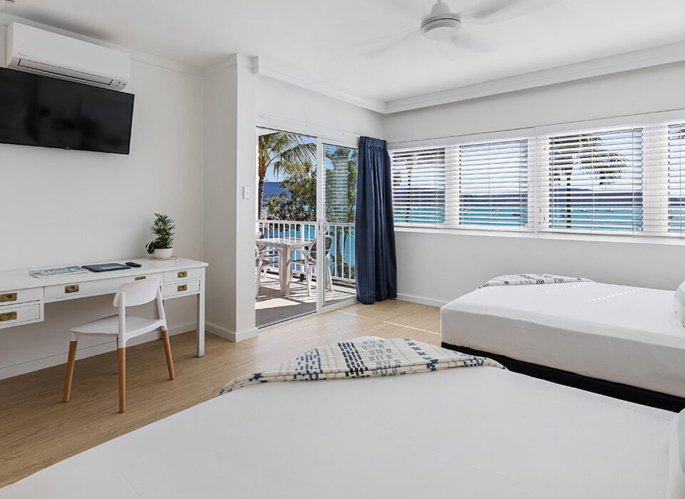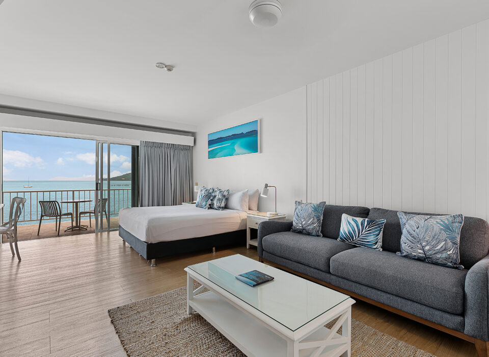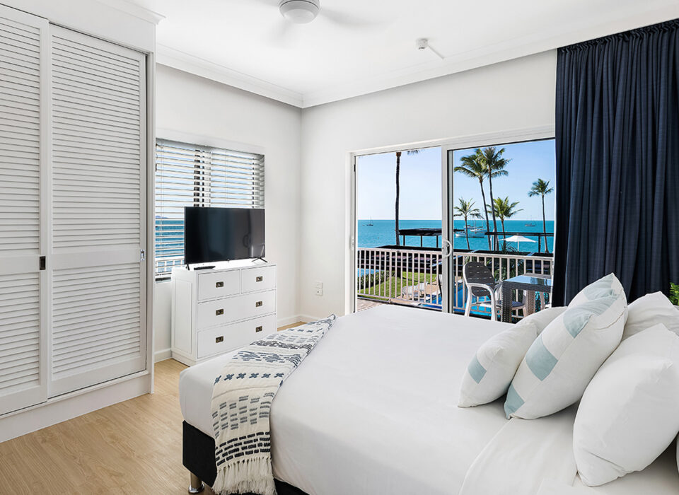 Perfect for couples looking for modern comfort with stunning views. These recently renovated rooms feature a queen bed, kitchenette, and spacious balcony overlooking Pioneer Bay and the Coral Sea. Contemporary furnishings and calming color palettes create a tranquil haven after days exploring the Whitsundays.