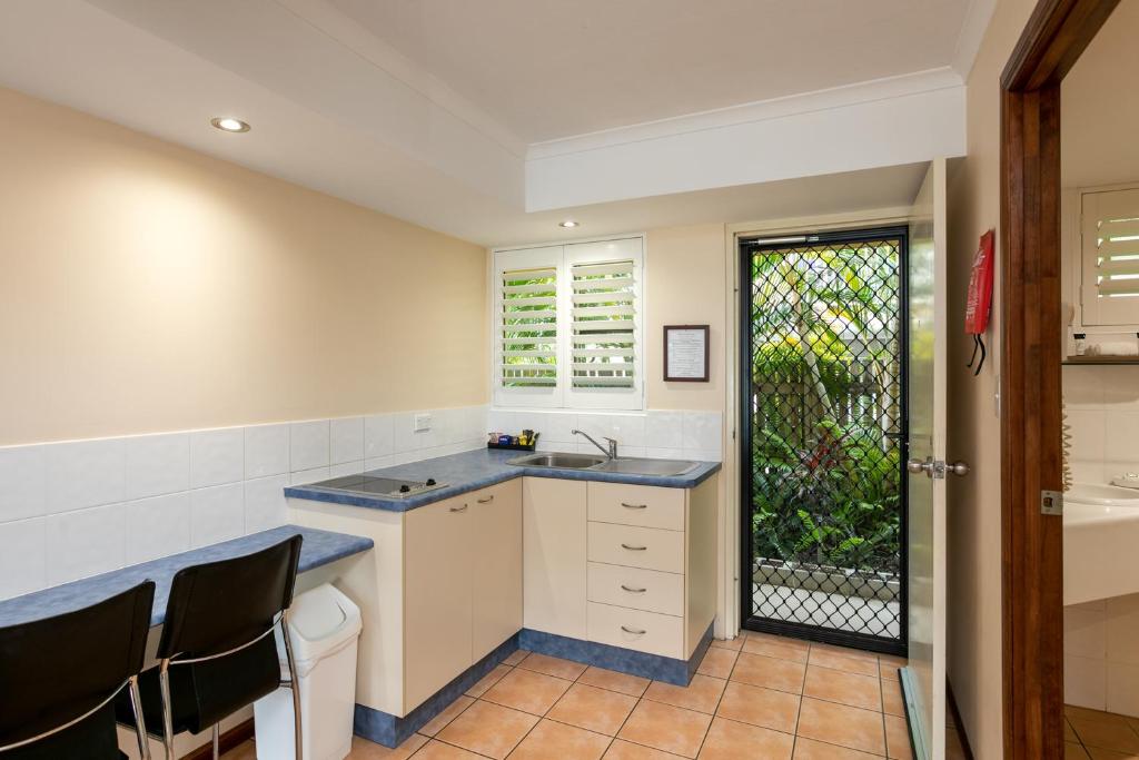 Sunlit Waters Studio Apartments doesn't accept bucks or hens parties - they keep it peaceful for couples and families. There's a $2,000 security deposit required on arrival (collected by credit card and refunded after checkout pending inspection). The hillside location means a short steep walk - fine going down, a workout coming back up!