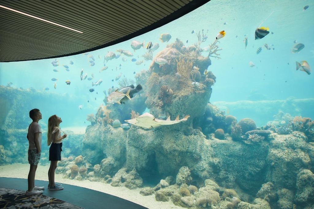 1.5 million liter coral lagoon with 100+ marine species and underwater observatory