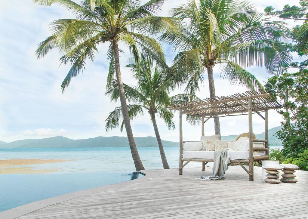Morning yoga at 8am (optional, all levels), leisurely breakfast, kayaking or SUP in the calm bay spotting turtles, lounging by the magnesium pool, reading in a hammock, afternoon spa treatment, pre-dinner canapes around the fire pit, three-course dinner, stargazing. Book day trips through the resort to Whitehaven Beach, snorkel fringing reefs, or explore other islands. Walk the trails through Long Island National Park. Or simply do nothing - that's the whole point. Most guests describe it as the ultimate place to disconnect and properly relax.