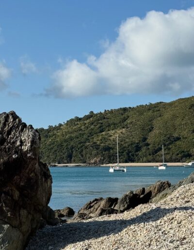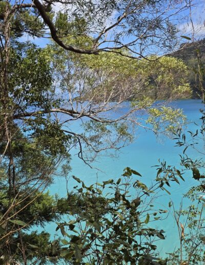 Swim in sheltered bays with calm, clear waters. Access secluded beaches including Stonehaven Bay, Butterfly Bay, and beaches at camping areas.