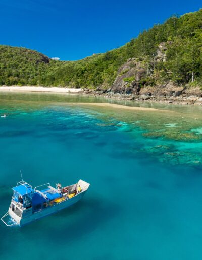 Explore Hook Island on snorkelling day tours, overnight sailing adventures, or multi-day camping expeditions. Most tours depart from Airlie Beach and include stops at the island's pristine reefs, secluded bays, and cultural sites.