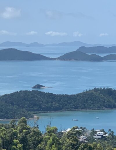 Identify Whitsunday Islands from the summit including Daydream Island, North Molle Island, Hamilton Island, Dent Island, Long Island, and Henning Island.