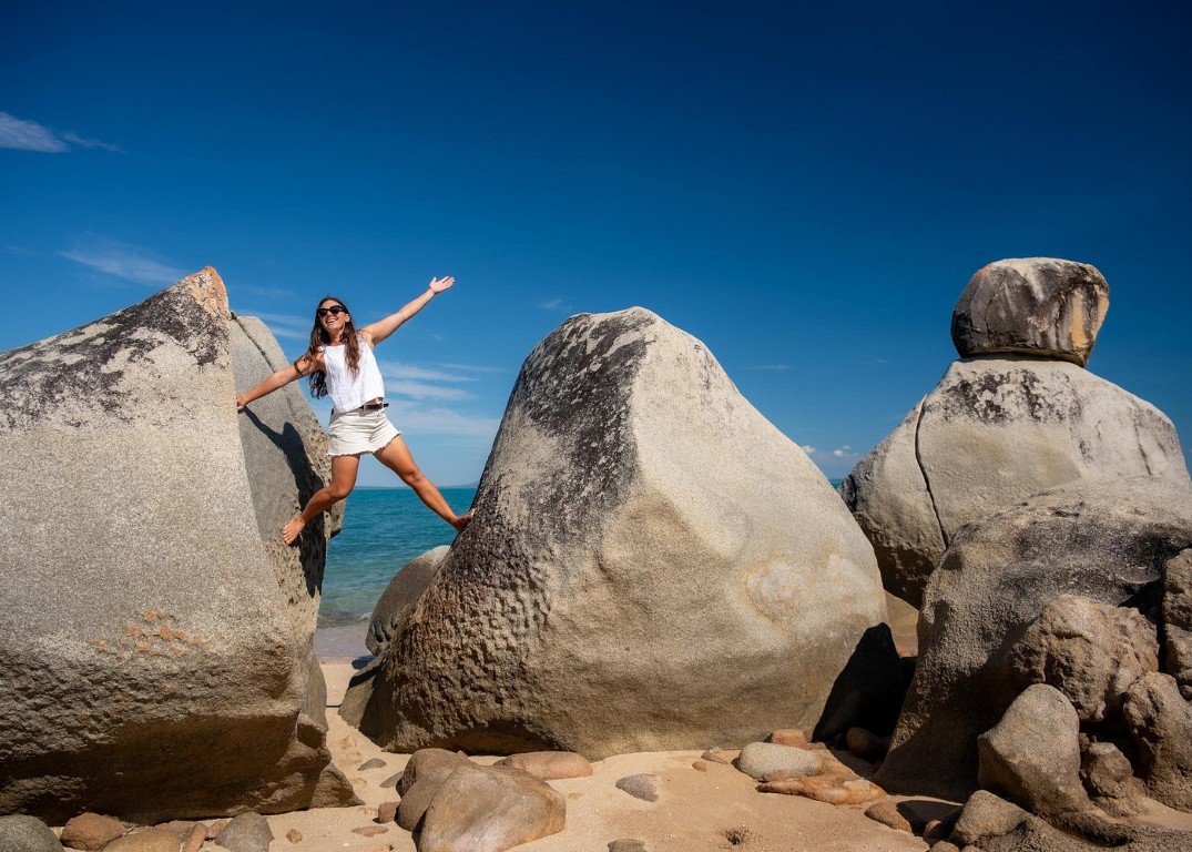 Froggies Beach & Lookout: One of the highlights of the day. Froggies Beach is surrounded by massive granite formations and the lookout offers sweeping views of the Coral Sea. The combination of white sand, turquoise water, and giant boulders makes this spot incredibly photogenic. Cherene will take as many photos as you want.