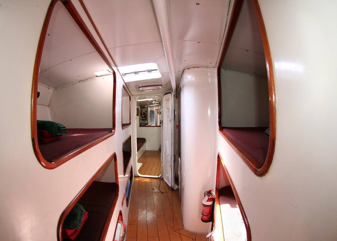 Siska has open-plan accommodation with a mix of single bunks and double bunks. Bathroom facilities are shared. Some guests choose to sleep on deck under the stars.