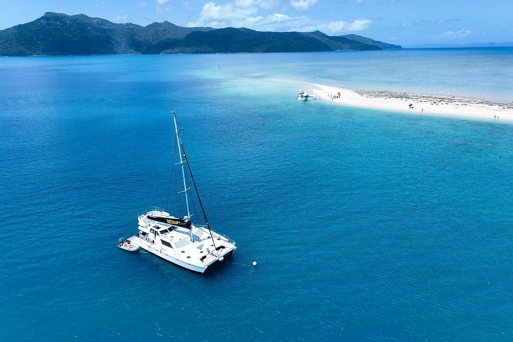 This is a proper sailing experience on SV Wings III, a custom-built 60-foot catamaran with air conditioning, a foredeck jacuzzi, and three spacious levels. The boat maxes out at 29 passengers, so you get a much more intimate experience than those packed tour boats. Wings has been operating in the Whitsundays for 23 years and holds a private mooring at Langford Island - a stunning uninhabited sand cay that most other tours can't access.